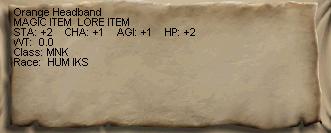 Phin Esrinap says 'This is a difficult award to obtain. The city of Qeynos is, as you know, under constant attack by the gnolls of Blackburrow. The Silent Fist Clan rewards its members who venture deep into this gnoll stronghold and bring swift justice to these vile creatures. Please return two Blackburrow gnoll pelts - make sure they aren't ruined - and a Blackburrow gnoll skin as proof of your noble actions. Also, turn in your [yellow headband], and then I shall give you the orange one. Good luck!