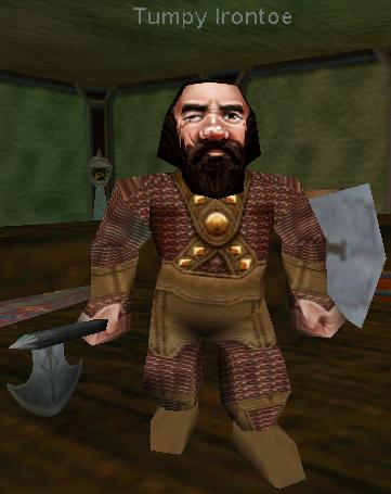 Tumpy Irontoe says 'Welcome to Irontoe's! The finest watering hole this side of Oggok! If you're looking for anything special and it ain't behind the bar, just ask. Maybe I can make it.
