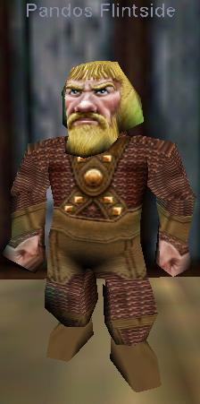 Pandos Flintside says 'Greetings! Please move along. I am not paid to converse with strangers... unless of course you have a muffin or two..?